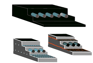 Transverse reinforcement: depending on the application – with or without transverse fabric or metal breaker/weft.