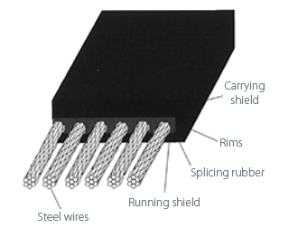 The belt consists of a combination of two layers of wires embedded in rubber. The core contains: